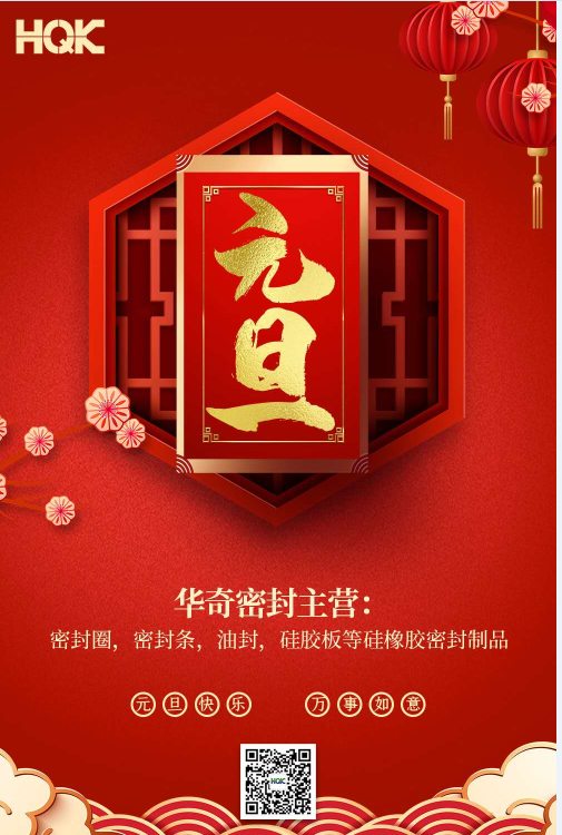 新年新征程,臨近元旦,辭舊迎新元旦到,在即將過去的2019年非常感謝廣大客戶長期以來對我們?nèi)A奇工作的理解和支持,惜別2019,我們迎來了充滿希望和挑戰(zhàn)的2020年,請點擊快樂的音符,讓它為你下載歡樂,新年到,華奇密封有限公司在此提前送上誠摯的祝福:祝大家新春快樂,生意興隆,萬事如意,身體健康,鼠年大吉!
